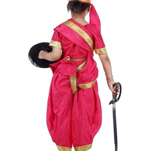 - Contains a Laxmi Bai Saree (ready-to-wear), Blouse, Turra (Headgear), Play Sword and Shield